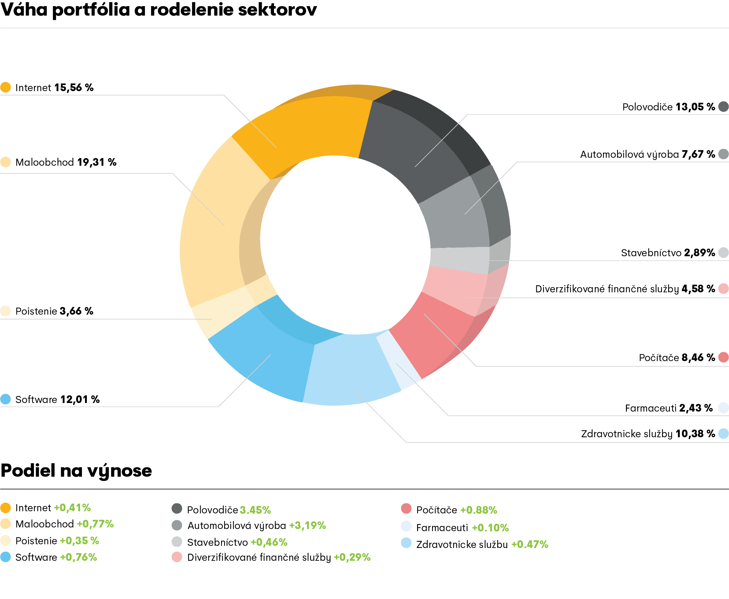Vývoj príspevku zhodnotenia jednotlivých sektorov k zhodnoteniu celého portfólia a priemerné váhy sektorov zaradených do portfólia od 1.8.2020 do 30.9.2020